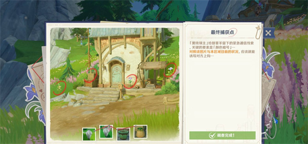 3、第二处线索:扫描完第一个后,视角向左手边转,扫描房子门前右边地上的花盆。