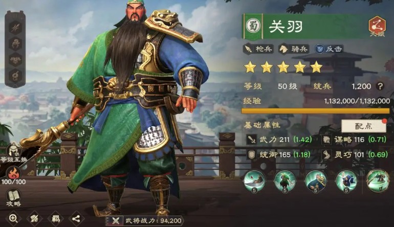 关羽他的主动技会在旋转收势之际更能将敌人远远击退,得益于超高的武力成长,这一招式的系数远超寻常将领,除了主动技,关羽的普攻同样暗藏玄机,每次挥砍都能汲取天地元气回复自身怒气,加速下一次爆发。