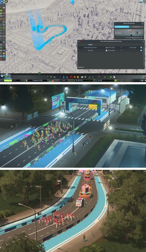 新DLC“Race Day”中,游戏将举行包括摩托车赛、马拉松、汽车竞速以及盛装**四项街头赛事活动,追加多种赛事专用街头设施和道具,路边增设观景台以及服务站等等,作为城市守护者的玩家来说,需要合理规划举行活动区域交通状况,尽量不影响城市的正常运转。