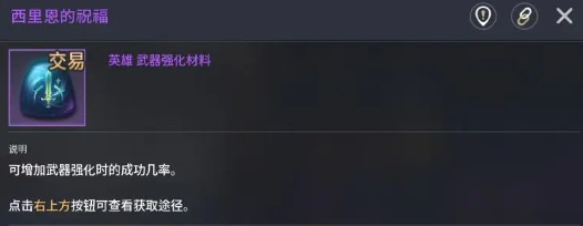 游戏中的强化材料,这才是关键,可以有效提升战斗力的核心。希里恩的祝福可以有效增加武器强化的成功,不过想要获取可没有那么简单,一般需要保证战斗力在6万以上,在刷野怪时才能够掉,所以等到战斗力满足之后就可以去刷。装饰品强化也可以使用祝福精工石。在副本还有野怪中都可以掉落,也可以来到商城去购买,嫌麻烦的话那就商城购买更快一些,不会浪费太多的时间。最后也说一些特殊的物品,紫色钻石不需要多说,基本上核心的玩法都会给,例如雕像战争还有限时活动。