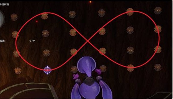 4、对着这里的盾牌射击一下就能使其变红,再次射击则是变蓝。参考下图射击盾牌,用红色盾牌拼出一个无限符号,即可完成解密