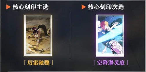 次选的话,大家可以选择铜骨·上这个刻印,也是可以带来了一些防御加成,因为目前她的弱点就是在防御数值上面没有其他的技能可以使用,有了这个刻印的话,也会增强夜一的生存能力,其他的方面就是核心刻印方面,大家可以选择一个能够提升她爆发输出能力的刻印,比如说厉雷驰骤,这个刻印的话,一般来说就是为角色的爆发伤害带来足够大的提升,这个位置次选的话,还有空降瀞灵庭,这个刻印其实很多玩家没有给她使用过,如果跟她搭配在一起的话,会让夜一的机动性更强一些,在战场上的灵活程度也会更上升一个等级。