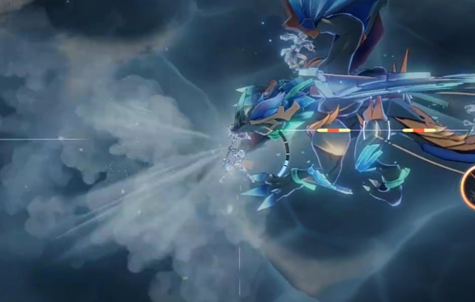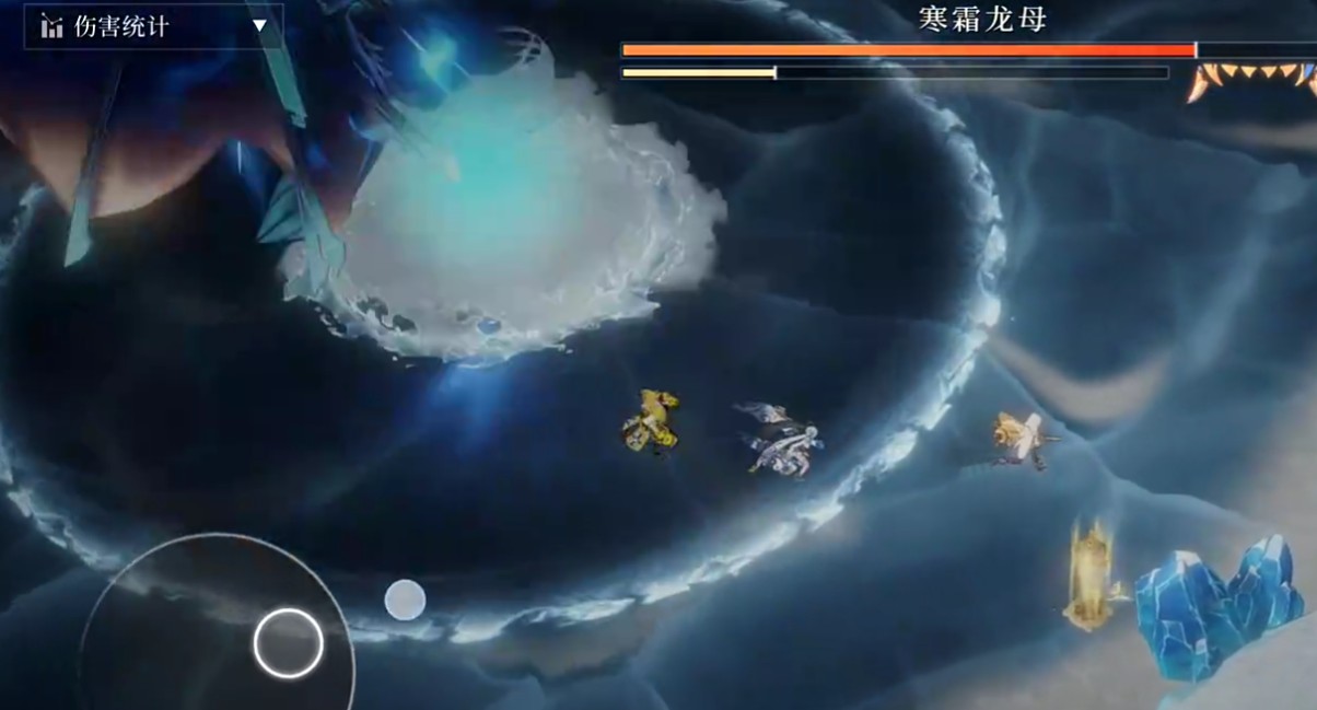 紧接其后,将释放逆时针方向90°角的寒霜喷射,具备冻结效果且伤害极高,建议根据龙头转动方向同步移动进行规避。之后BOSS升空盘旋一周后落地,并逐步释放向外蔓延的冰环,只要始终保持在冰圈扩散范围之外,即可避免受到致命打击。