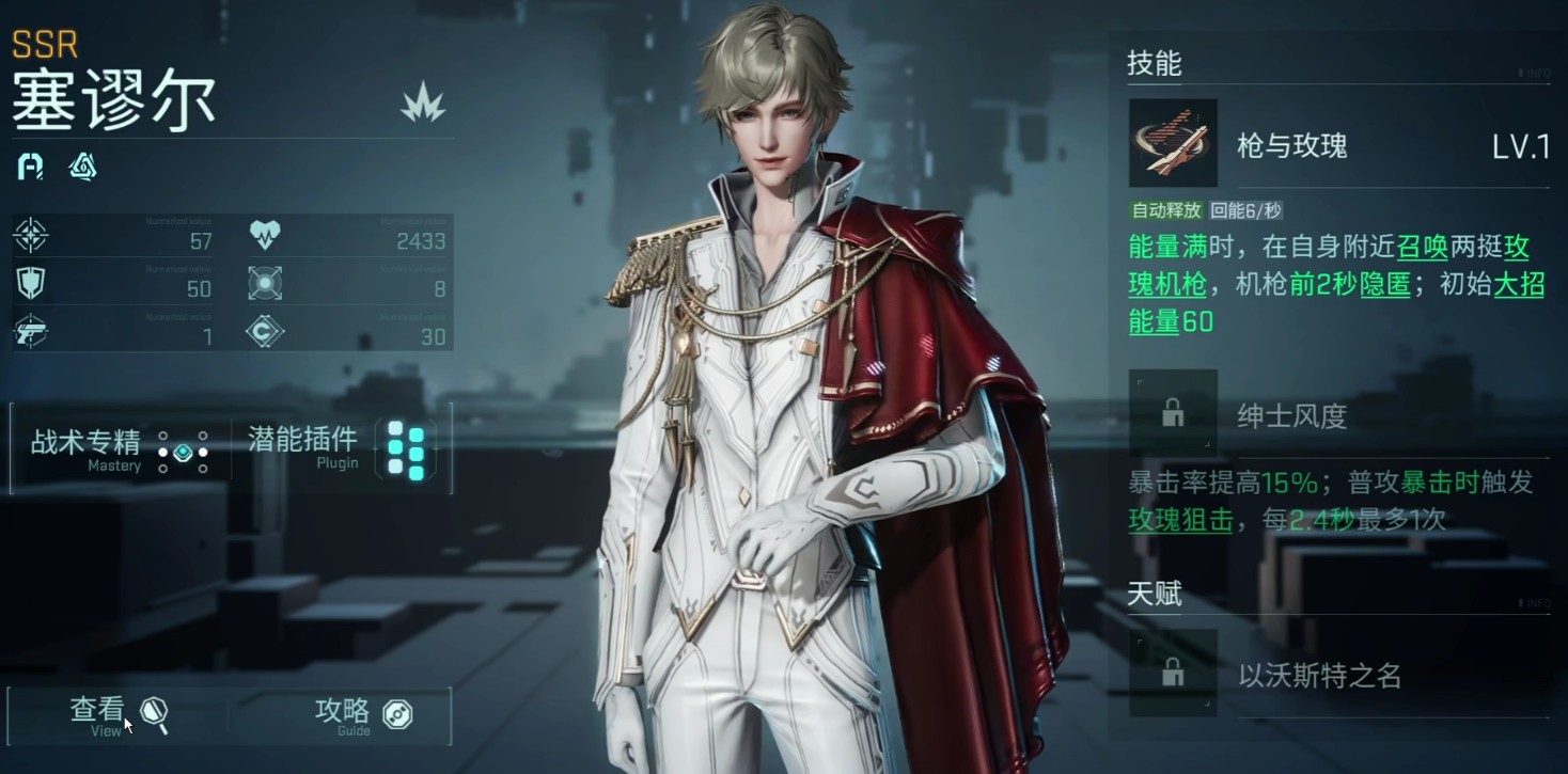 赛谬尔在游戏内是一个远程输出角色,能量储备完成后,可以召唤机枪对敌方进行扫射,同时整体暴击率极高,能够持续性输出。