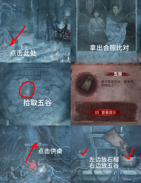 30、得到【残缺的全家福】,进塔内对左下角浮雕画使用照片,得到【五谷】
