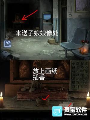 10、回一楼佛龛放上【香】【画像纸】触发石像被发现写了假八字,用【圆珠笔】重写一次(微恐转高能)