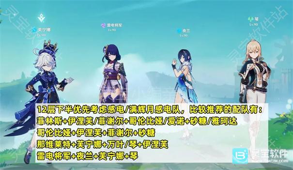 由于需要频繁应对感电破盾机制,下半层的配队核心是优先构建以感电或月感电为核心的队伍。例如,可以围绕哥伦比娅、伊涅芙等月体系角色组建队伍。如果没有月体系角色,也可以考虑使用那维莱特作为驾驶员,搭配菲谢尔等后台雷系角色组成的“感电龙”队,同样能有效应对各种破盾需求。