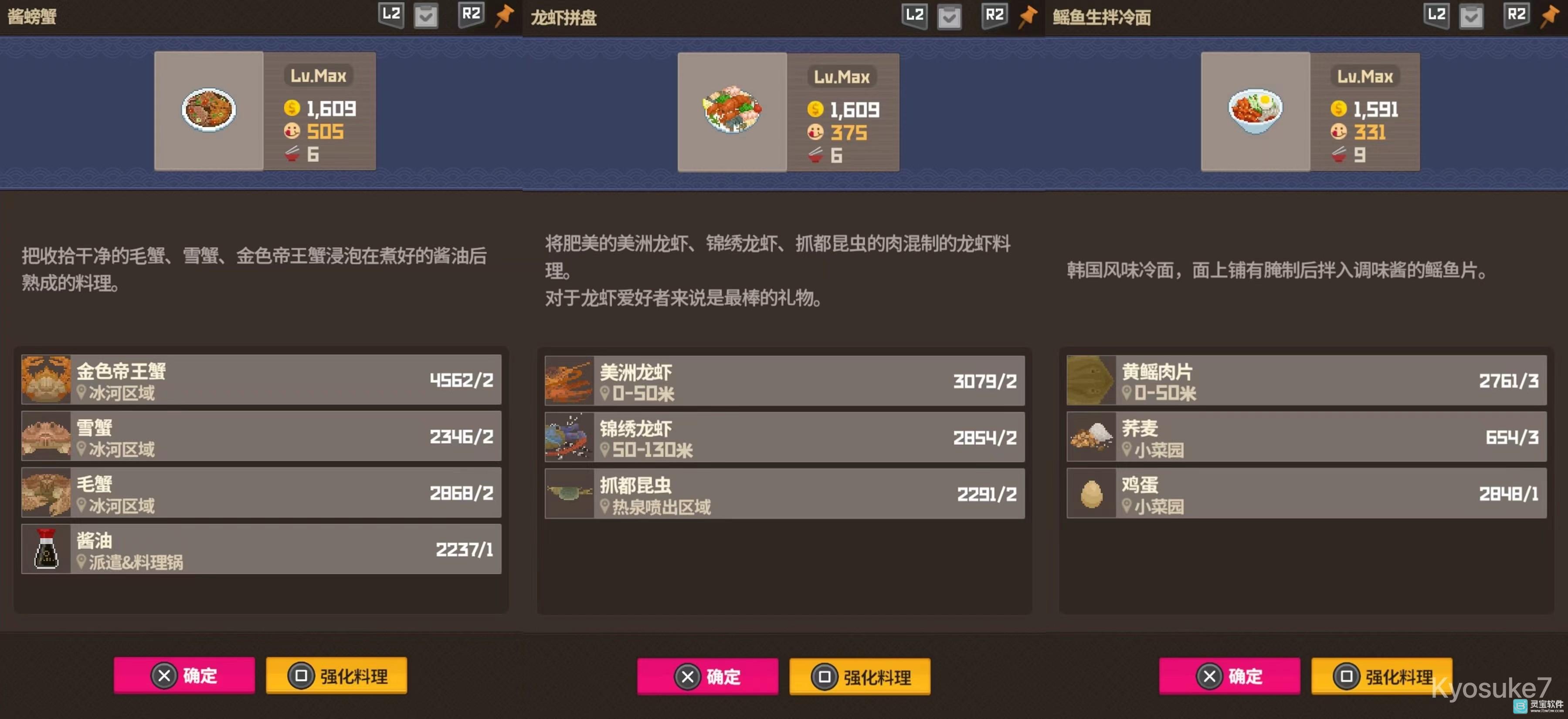 鳐鱼生冷拌面虽然单价依旧没有比过酱螃蟹和龙虾拼盘,但优点是更容易成型且制作份数更多,一旦养殖获得也更稳定,个人评价属于同一档T0毕业菜,因9份菜特性更推荐在毕业分店使用。
