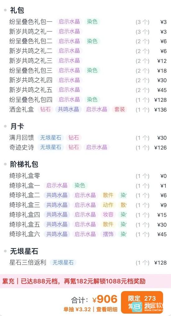 放弃后面阶梯礼包和大月卡,只充最单抽最低的几个礼包。但是也能达到累充288档位,可以领到累充的三星四星套装。
