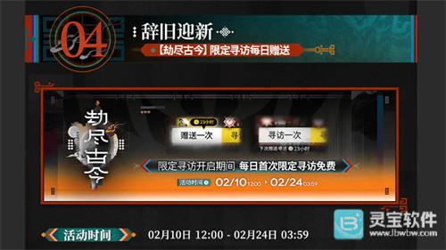 活动期间,玩家每日可在【劫尽古今】限定寻访中免费进行寻访一次