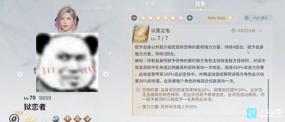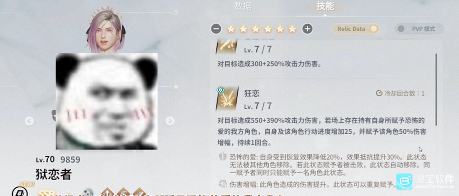 狱恋者PVE用来辅助输出,给输出加攻增伤,且能触发狱恋者真伤追击,伤害也不低。4回合恐怖的爱和强力力量,3回合后究极技冷却结束可刷新状态。 PVE能到T0.5的强度