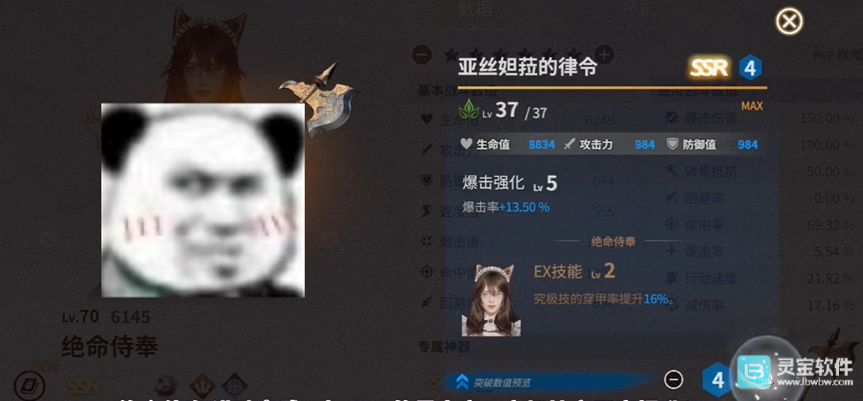 PVP 需要堆速度,先手放究极技上状态,伤害会缩水不少,且只能追击生命最高的一个角色,比较一般大概T1水平