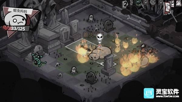 第三关骸骨地最恶心的是小骷髅会复活,必须用劣质喷气背包炸才行,但我的背包没有升级,所以很有可能炸不中,在经历了折磨后我们对阵区妈妈