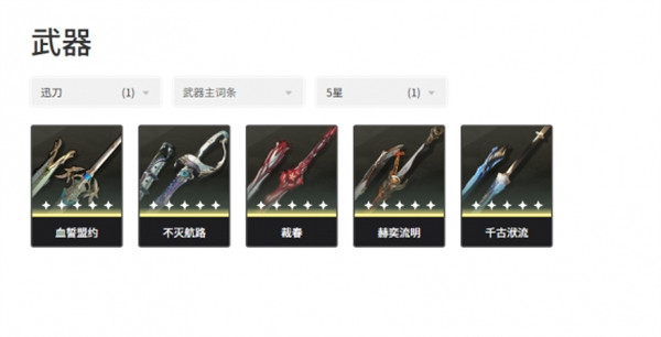2、目前的五星迅刀武器总共有五把,其中长离、椿、船长的都是迅刀。