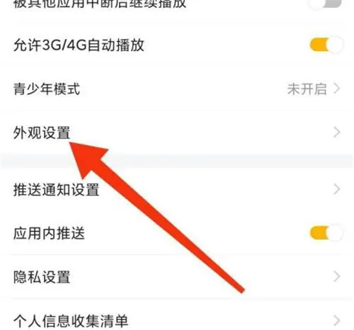 2、在设置页面,点击【外观设置】进入,如图所示。