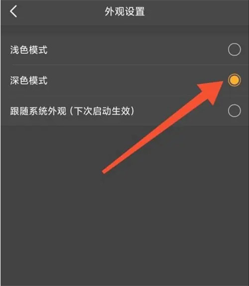 3、在外观设置页面,把【深色模式】打开即可,如图所示。