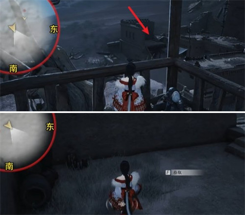 4、第二个碎片:前往西方向的哨塔,跳到塔上拾取道具。