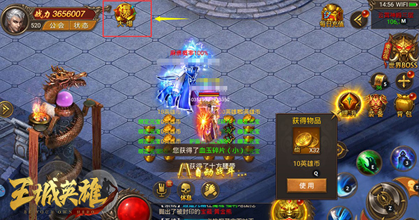 让极品装备不再是土豪专属,他氪金咱爆肝,只要运气好,一样拿金装。通过“幸运大爆”玩法,《王城英雄》每一只BOSS都有几率掉落紫装、金装、红装。只要能肝啥自行车都有。