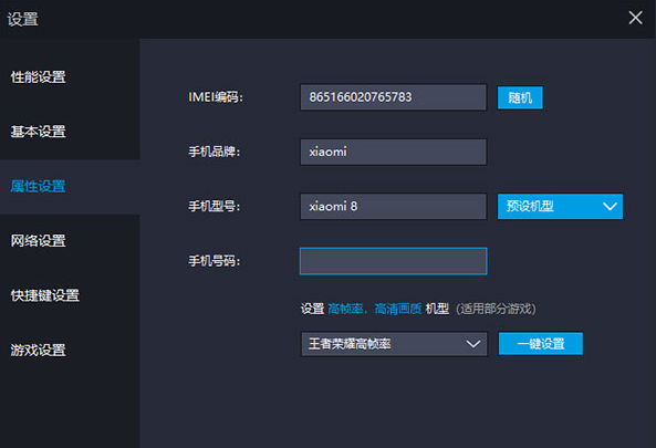 3、接着在属性设置之中,找到一个手机型号进行设置,之后我们再次进入游戏的话,系统会默认我们是这个手机进入游戏的,这样操作就会简单些了。