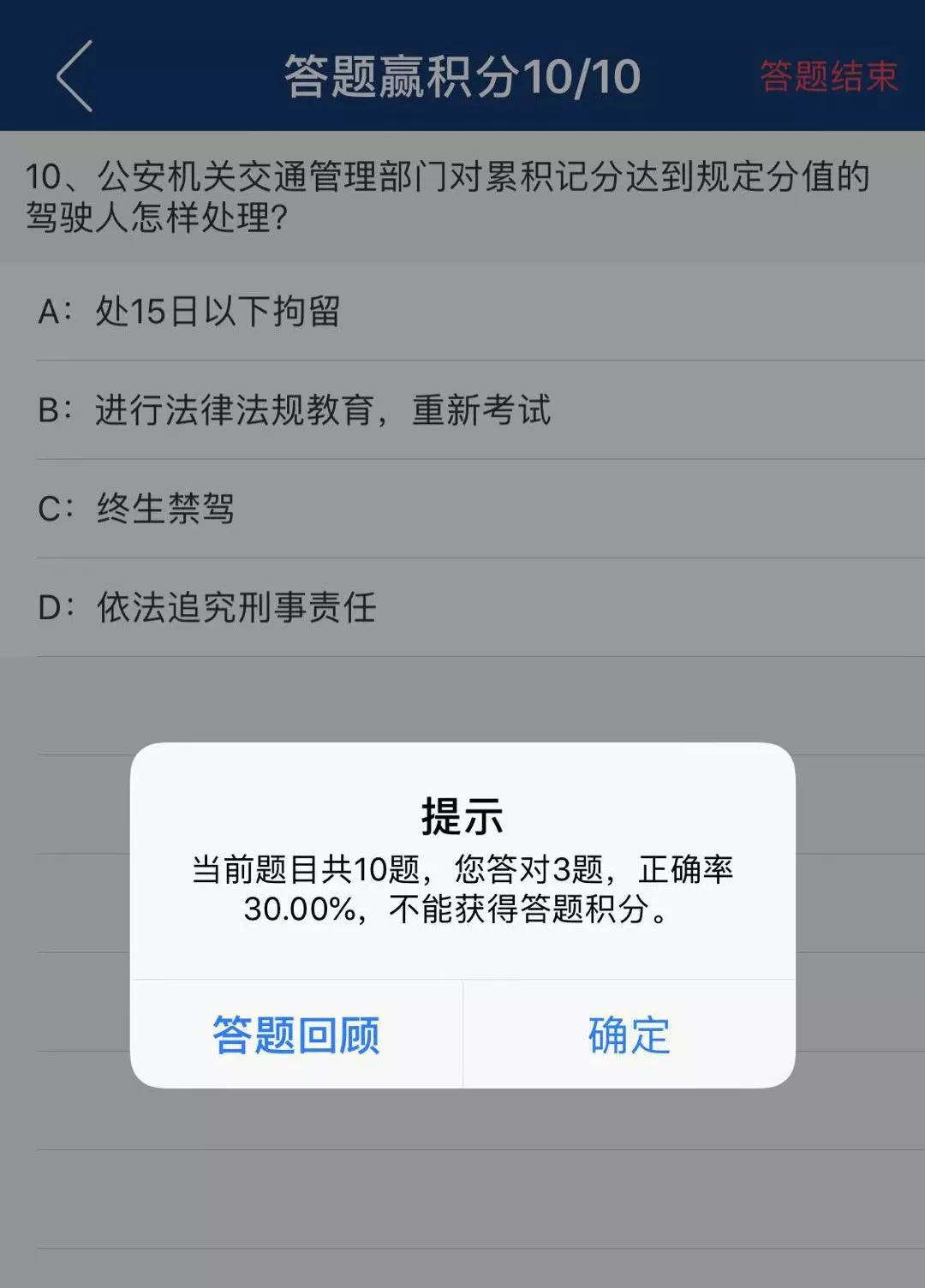 5、如果答题错误,还可以通过答题回顾查看正确答案