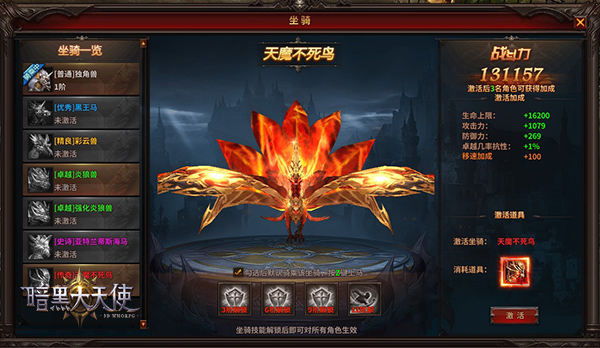 冒险魔幻大陆,怎能没有代行工具。37《暗黑大天使》坐骑系统提供风格各异的骑行工具,他们种类繁多造型百变,从陆地到天空应有尽有。不仅如此,根据坐骑不同血脉进行培养,它们还将觉醒不同的天赋技能,让你的冒险旅途中更具安全感。