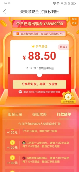 免费的东西并不是那么容易得到的,虽然很多小伙伴成功提现了100元,但是还是有着更多的人没有成功。