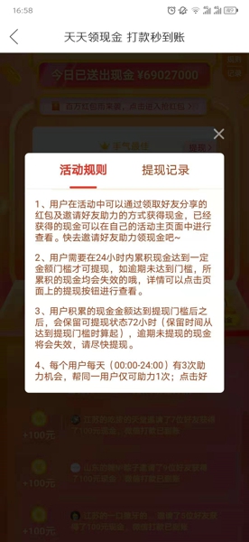 这个活动的本质就是社交的玩法,通过分享活动链接让好友帮助你助力,但是据小编的经验,一般邀请一个老用户助力只能助力一分钱,如果你是98元的话,大概就要邀请200人的样子助力就可以提现了,但是如果能邀请要几个新用户的话助力的金额还是很不错的哦!