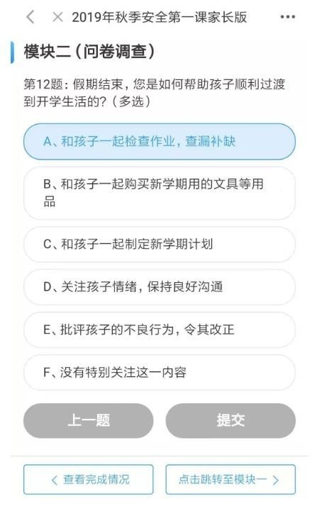 六、授权后,单击“安全第一课”,完成模块一和模块二,提交