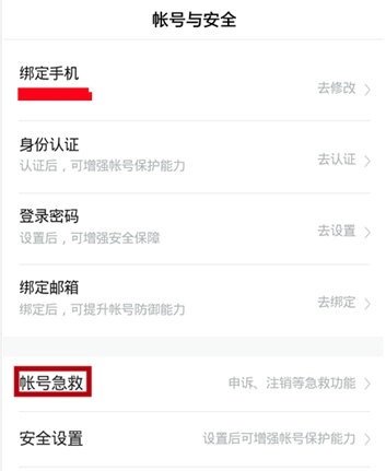 2、接着我们在设置中进入到“账号与安全”界面,在该界面找到“账号急救”这个选项。