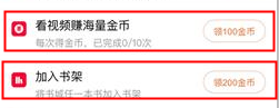 用户在每次观看广告视频30秒可以获得100金币,每天可以观看10次视频,总共可以获得1000金币;每日把任意书加入书架,可以获得100金币,每天1次。