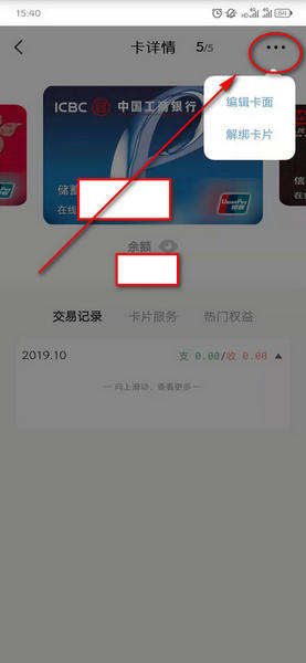 2、在需要解绑的银行卡界面点击右上角三个点的位置,会出现解绑卡片;