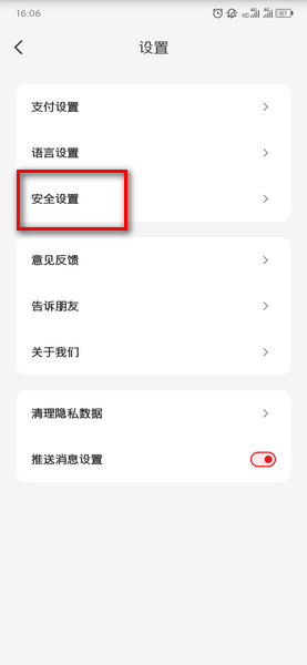 3、打开设置以后找到安全设置进入;