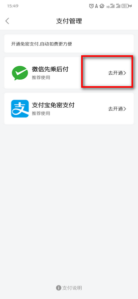 4、在支付管理中开通微信先乘后付;
