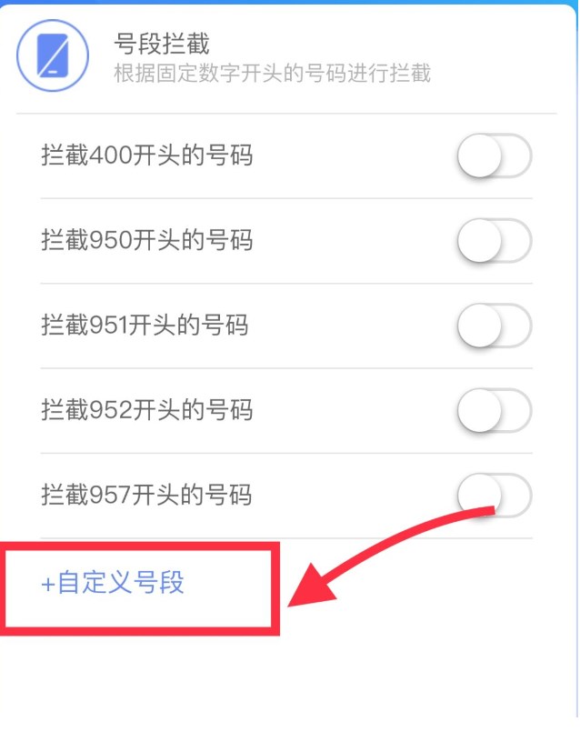 自定义号段允许用户自由设置特定号段,以拦截由此号段开头的号码发起的骚扰电话。通过使用自定义号段拦截功能用户可以更快速地对不断变换号段的骚扰电话进行精准拦截。