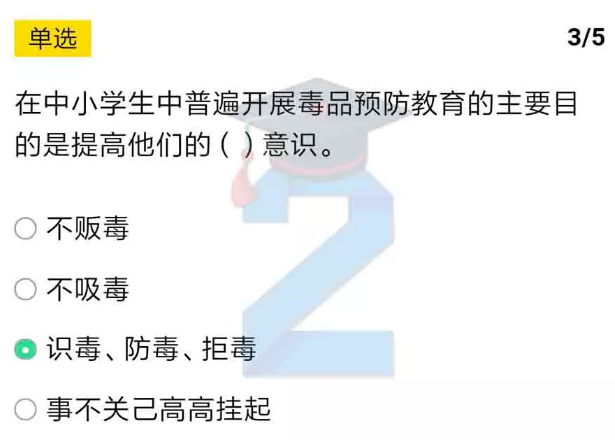 3、在中小学生中普遍开展**预防教育的主要目的是提高他们的识毒、防毒、拒毒意识。