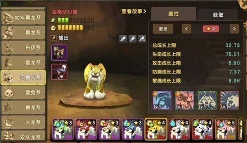 金虎在整个贝鲁卡系的存在都是特殊的,在宠物剧场中就可见一斑,它的情节不同于其他老虎的剧情,在一开始就告诉了我们它注定将成为王者,它也的确做到了,它拥有最帅气的金色皮毛和最强悍的力量,在征服暴龙的时候,它就已经成为了王。