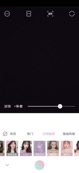 4、用户拍照也可以选择适宜的补妆效果哦,但是用户如果要选择补妆效果的话,就要先取消风格哦,因为风格和补妆是不同同时存在的哦,或者是某些地方补点淡妆就好了,淡妆才会拍摄出清新脱俗的感觉哦!