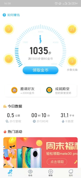 1、首先步多多的首页就是通过走路产生的步数,在首页就可以领取相应的金币数量,走的越多领取的就越多,每天的上限是两万步,每走10步就可以领取一个金币,除了通用步数兑换的金币以外,在这里还有着四个步数门槛可以领取金币,分别是1500、3000、4500、6000这四个门槛。
