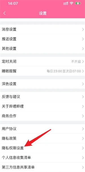 2、进入设置页面,点击【隐私权限设置】选项