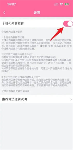 4、如下,将【个性化内容推荐】后的按钮点击一下关闭即可