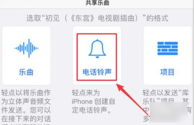 4、点击【共享】后然后选择点击【电话铃声】,如图所示: