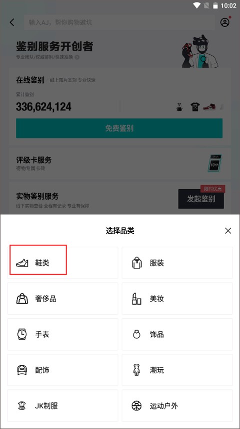 3、这里就需要选择你要鉴别的品类,以“鞋类”为例,点击它。