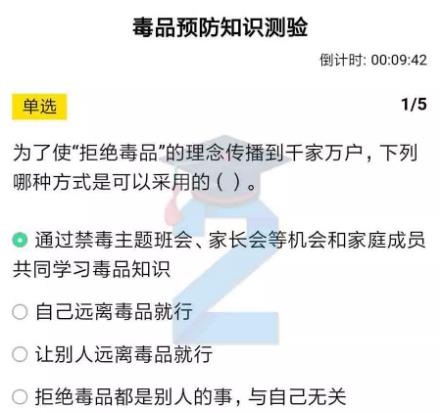 参考答案:通过禁毒主题班会、家长会等机会和家庭成员共同学习**知识