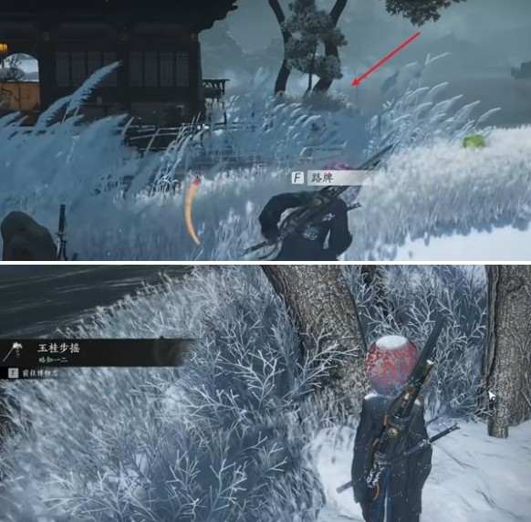 4、去箭头处的树后面有一个无名灵位,点击即可获得玉桂步摇。