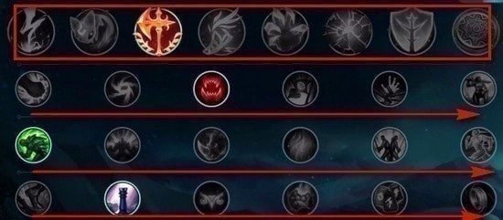 英雄联盟手游的符文天赋预览图。首先,原本端游需要点的9个符文天赋,包括一个基石天赋,三个主系,两个辅系,还有三个成长天赋。目前来看英雄联盟手游依旧是一个基石天赋配三个辅助天赋的模式,建华了端游复杂的符文天赋搭配,更加简单和实用。