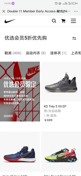 优惠码将在活动前,通过邮件、短信、或者是耐克官方微信发出,具体以收到为准。