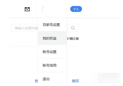 6.当我们要申请开通百家号原创时,我们在百家号右上面作家头像处,找到并点击我的权益。