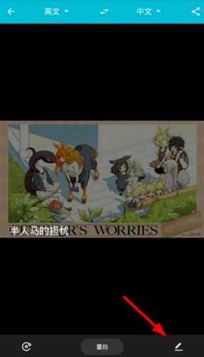 2、通过上方的按钮可以调整翻译的语言,点击左下角的按钮还能够选择手机相册里的图片进行翻译。