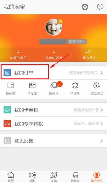 2.选择中间的【我的订单】