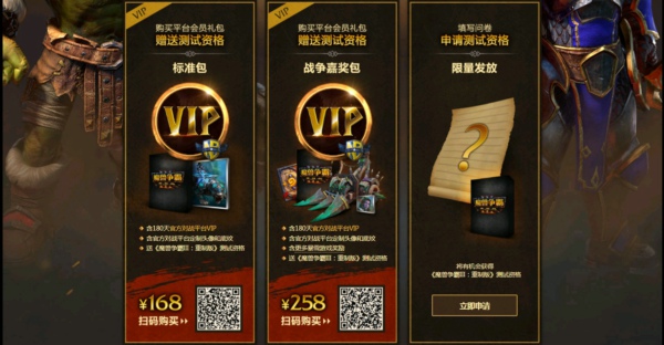 暴雪称这次的测试时间将会在11月5日开启,那么如何去获得这个测试账号资格呢?如上图之中的方式,前两种都是需要玩家们用RMB购买的,但是需要注意的是第三种方式,也就是填写一些表格,并且留下玩家们的手机号码,就可以随机抽取到测试资格了,小伙伴们要想进入这个问卷填写页面的话,还请直接点击链接进入。